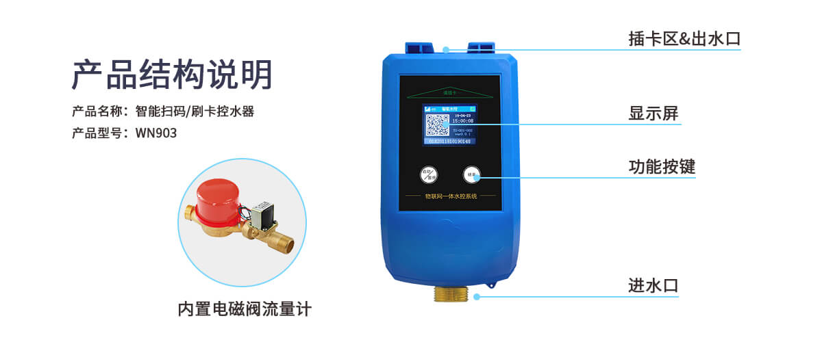 - 一體式全防水設(shè)計,內(nèi)置電磁閥、流量計,安裝方便;