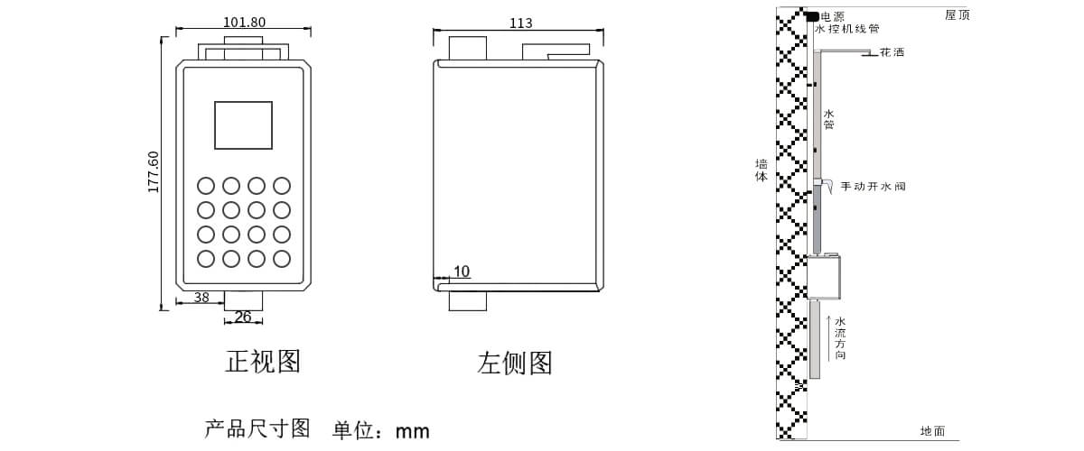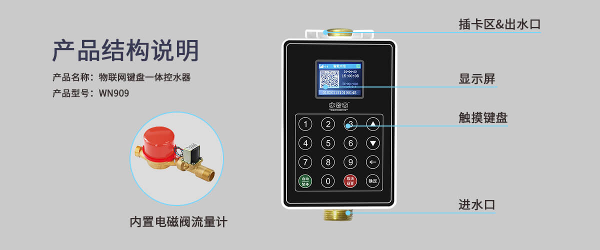 - 一體式全防水設(shè)計,內(nèi)置電磁閥、流量計,安裝方便;